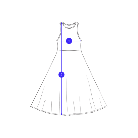 These individual product measurements have been taken from the garment pattern. The bust, waist, waistband, hip & hem measurements have been doubled to show the full circumference.