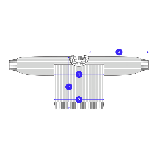 Measured flat across the front of the garment, taken just below the underarm point. This figure has then been doubled to get the full bust measurement.