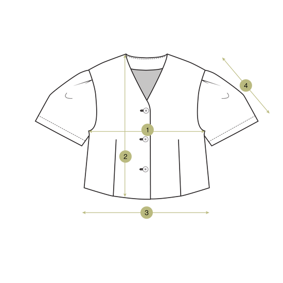 A statement piece with a bold silhouette, the Sienna Top has pleated sculptural sleeves and waist darts for shaping. A standard fit top, its slightly cropped in length with a flattering v-neck, nut buttons and a lined bodice. Made in a light weight organic cotton canvas. Pair with the Desert Pant for a complete look.