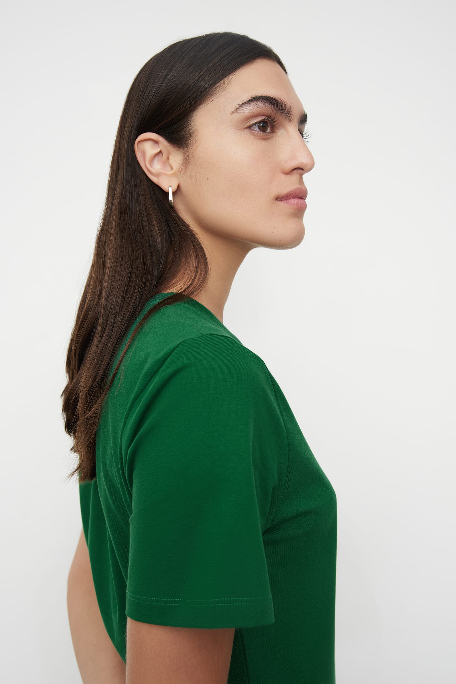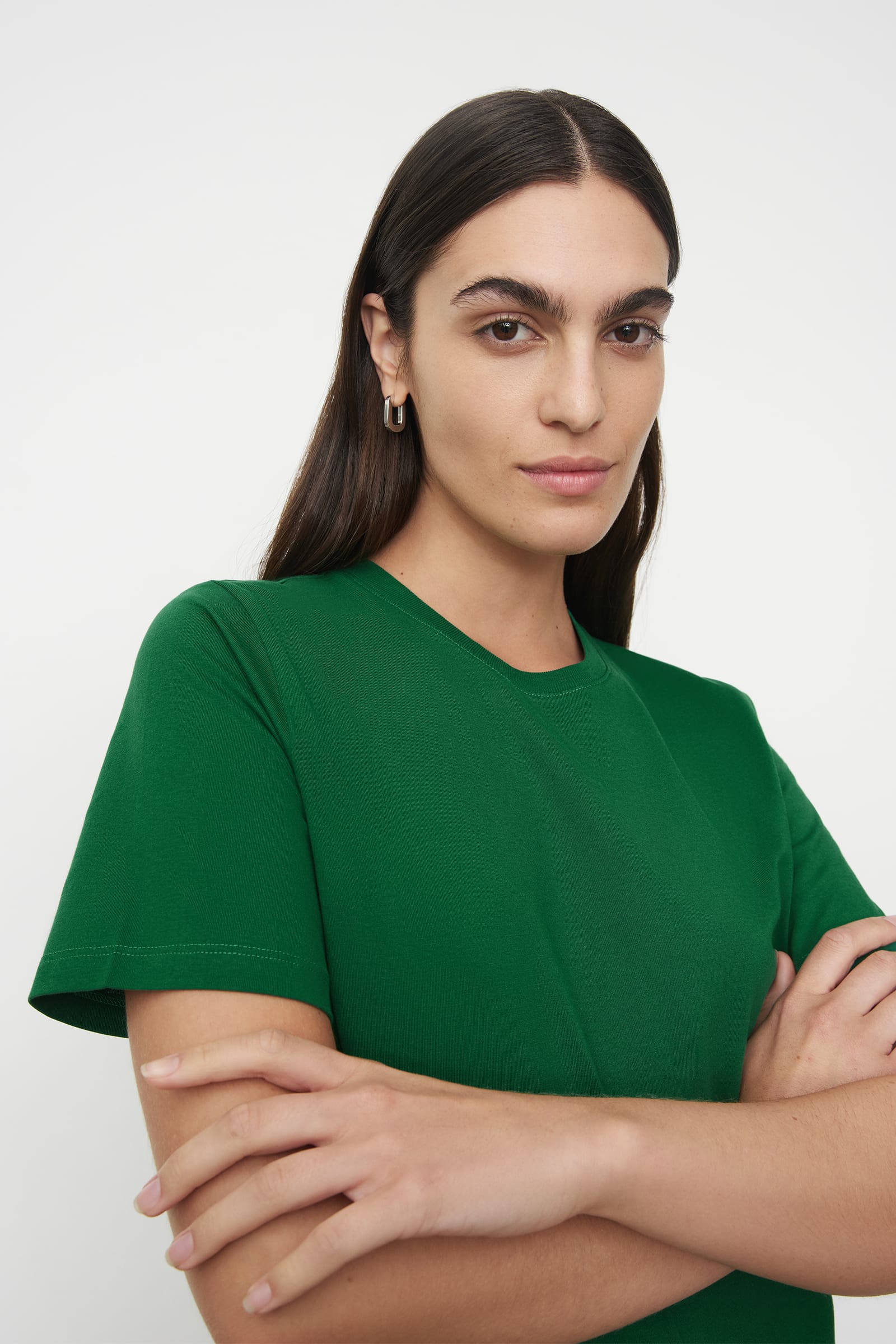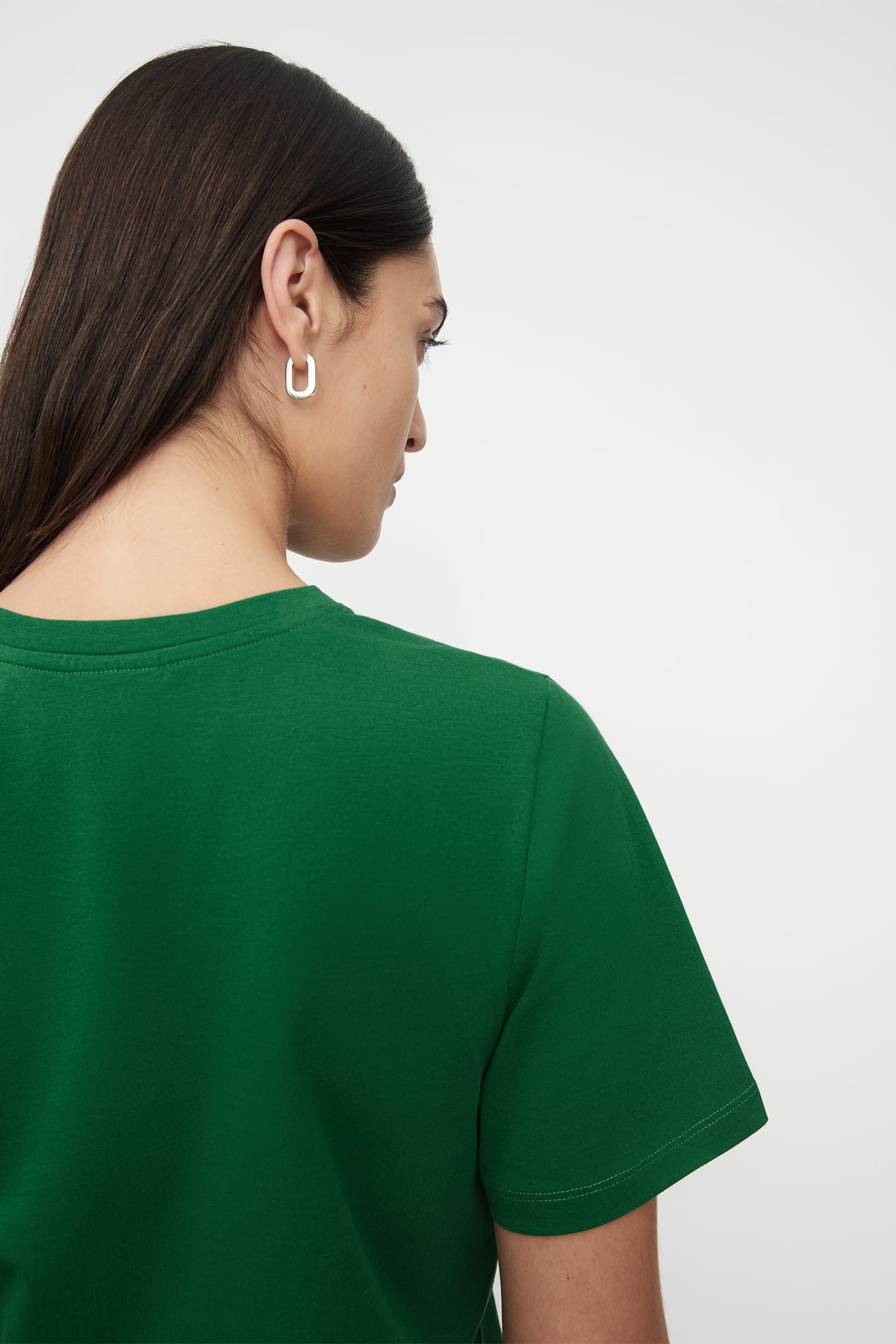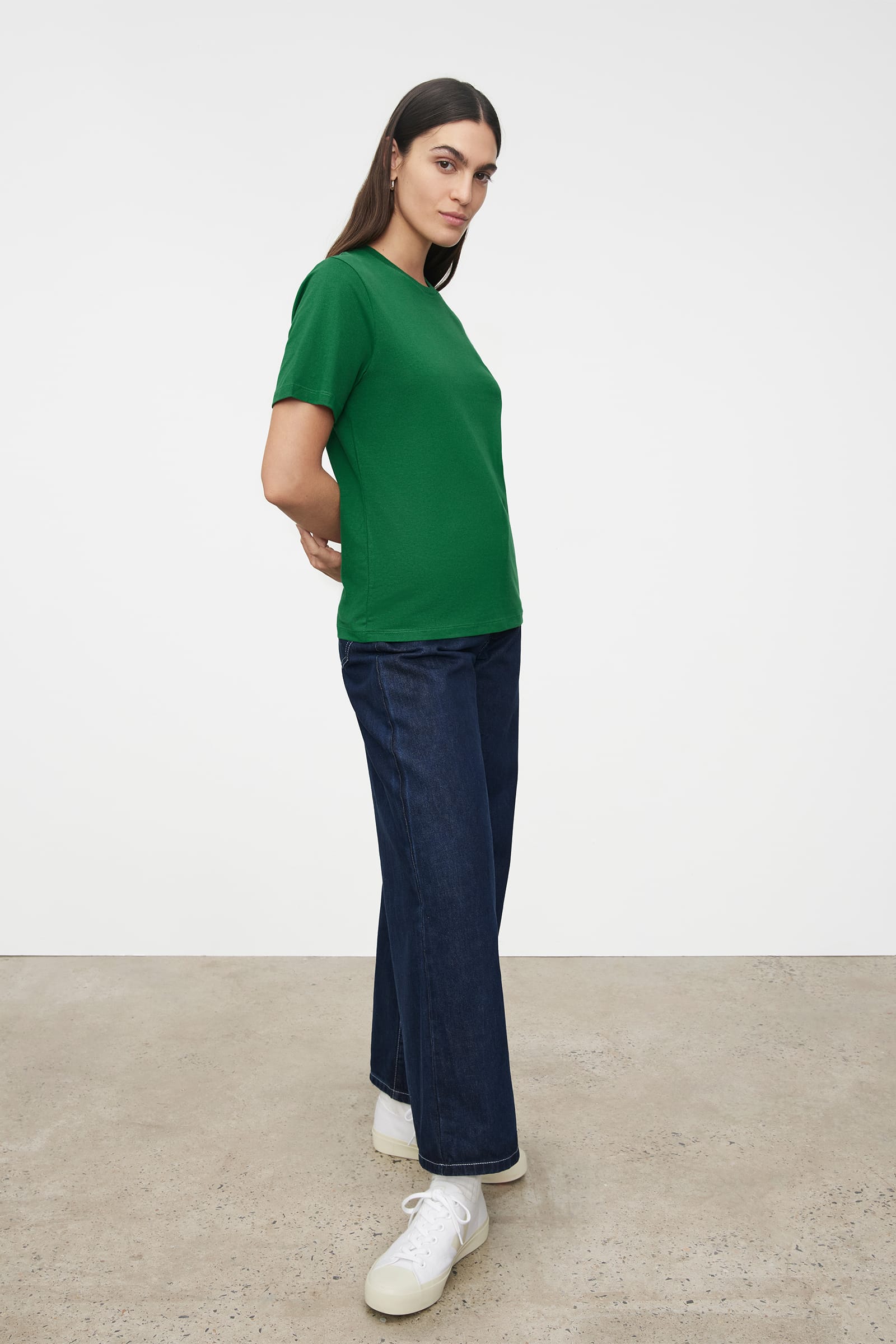 A short sleeve tee with a standard fit through the body and a ribbed crew neck. The perfect everyday tee, made from mid-weight organic cotton jersey.