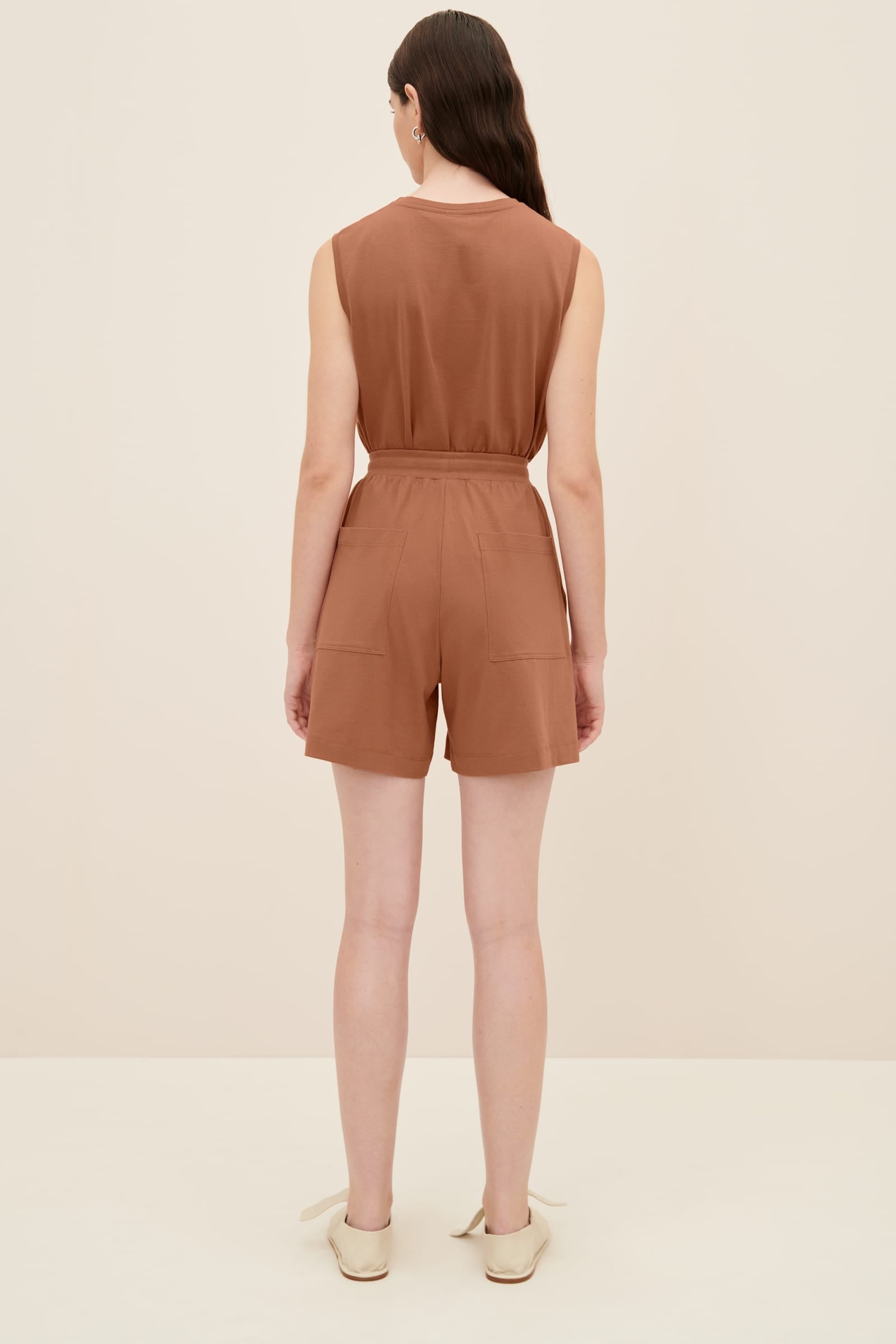 Ideal for casual wear, the Drawcord Shorts effortlessly combine comfort with versatility. These wide-leg shorts offer a relaxed fit that ends just above the knee. The mid-rise elastic waist includes a functional drawcord, while the back features two patch pockets and side seam pockets add to their practicality. Made from midweight organic cotton jersey.