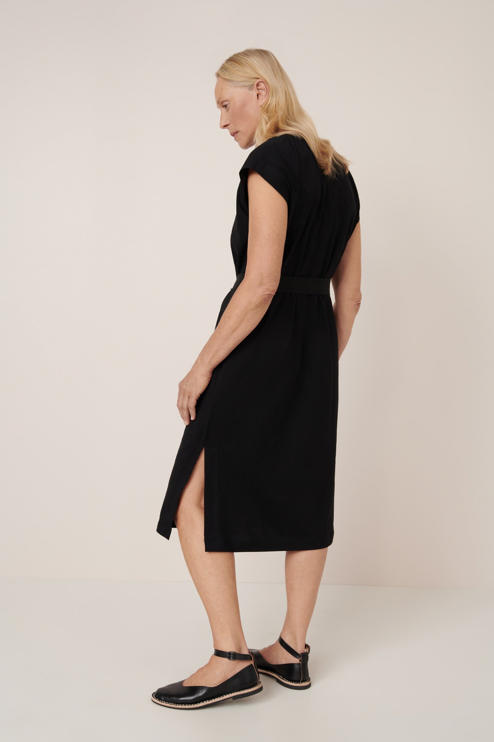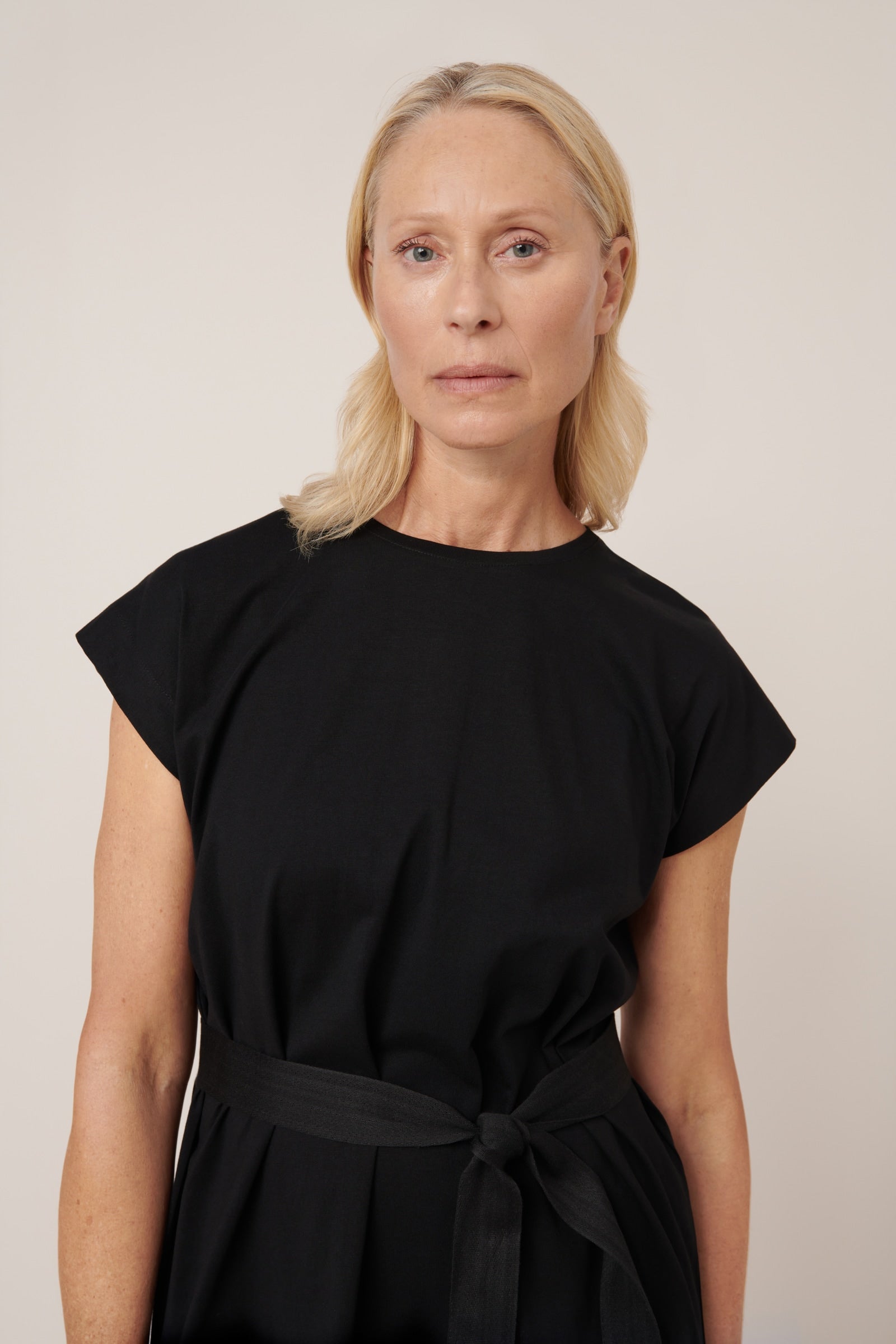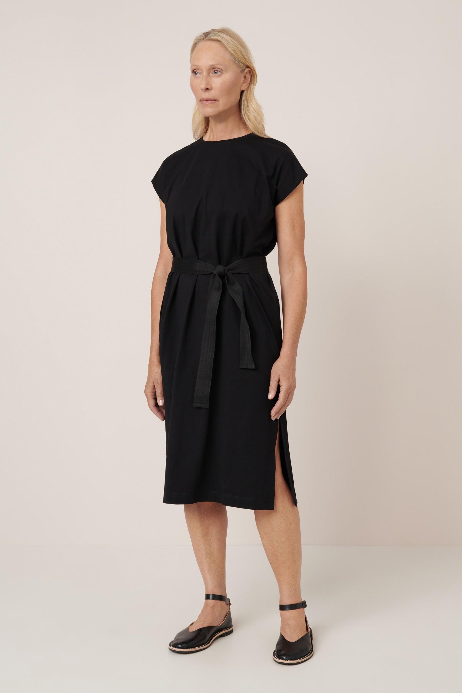 Perfect for every occasion, the Form Dress offers a relaxed fit with side splits for ease of movement, a crew neckline and chic capped sleeves. Falling below the knee, it can be worn loosely or cinched at the waist with the detachable belt for a more defined silhouette. Made from midweight organic cotton jersey.