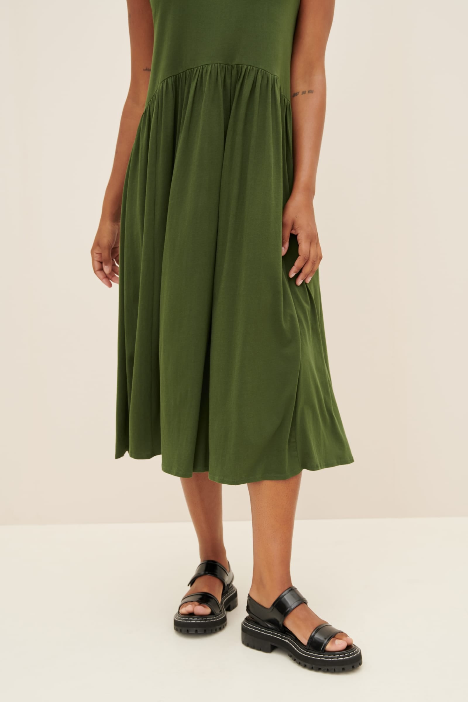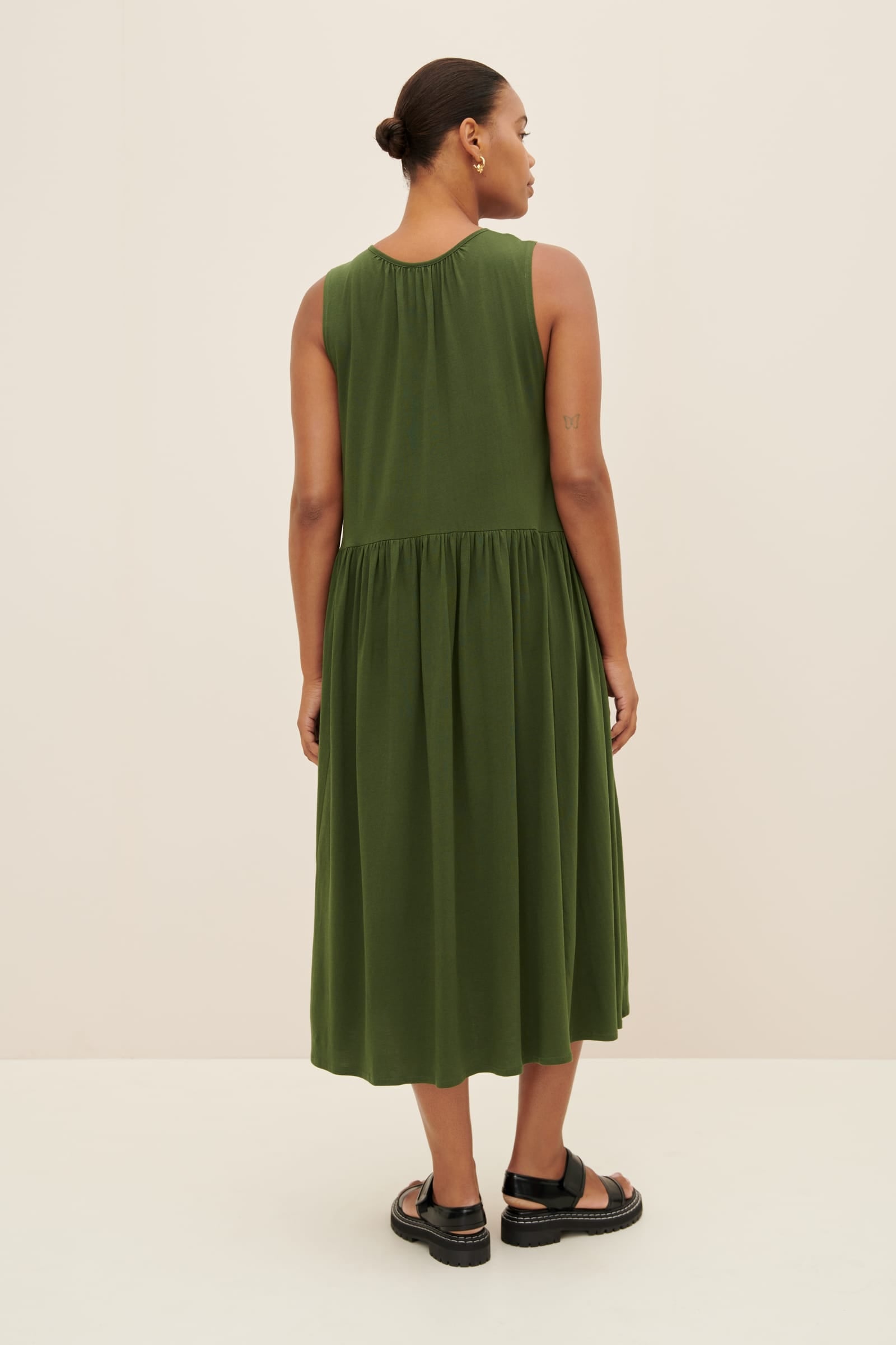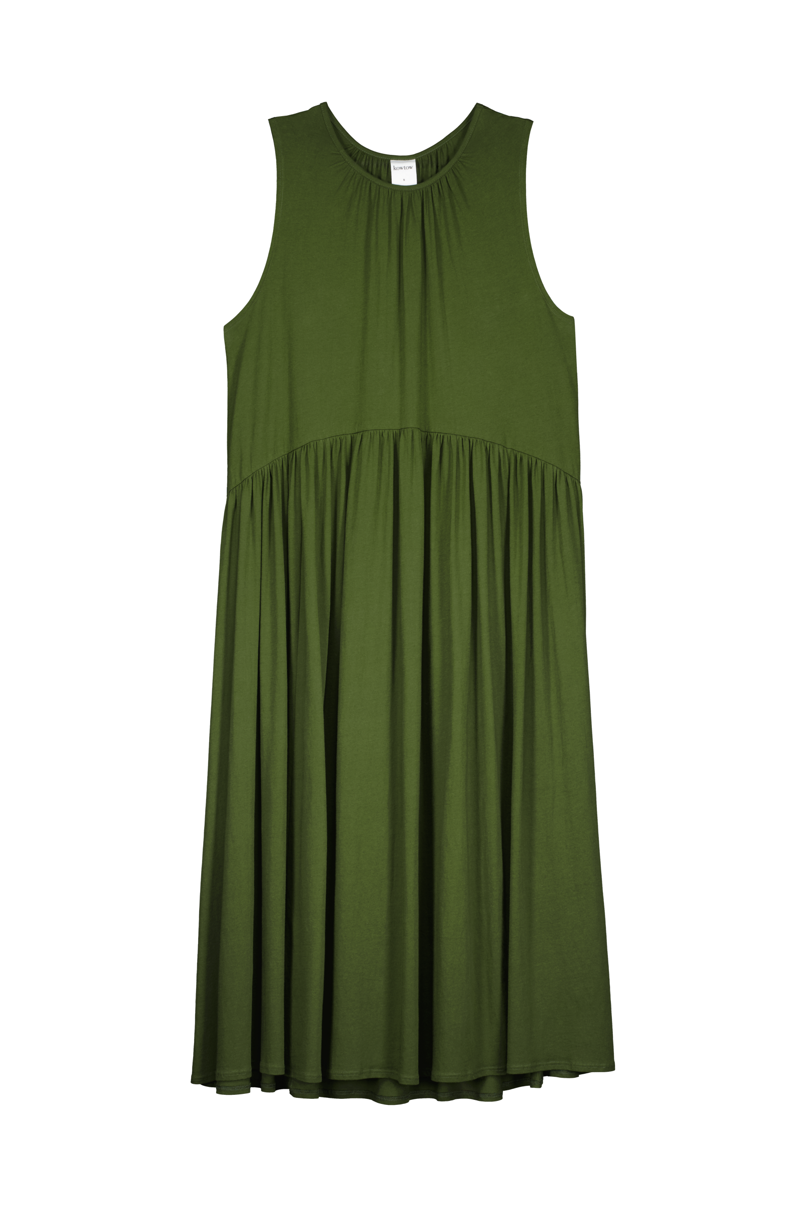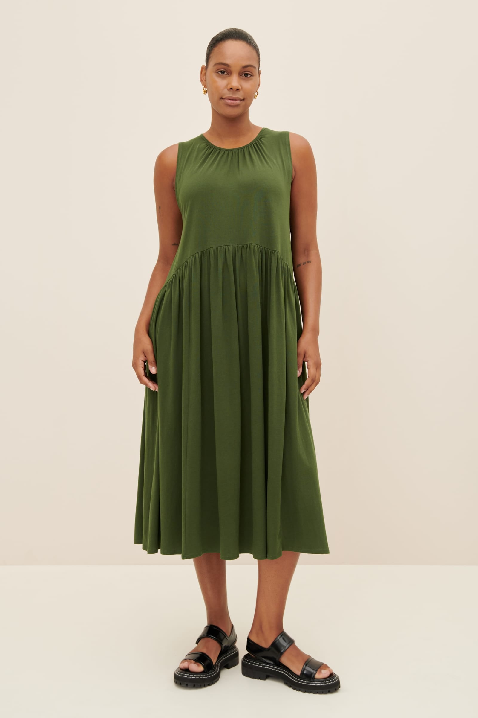 Effortless and easy-wear, the Horizon Dress is made from lightweight organic cotton jersey. It has a standard fit and falls to a midi-length. Gathers at the neck and waistline emphasise the beautiful drape of the soft jersey.