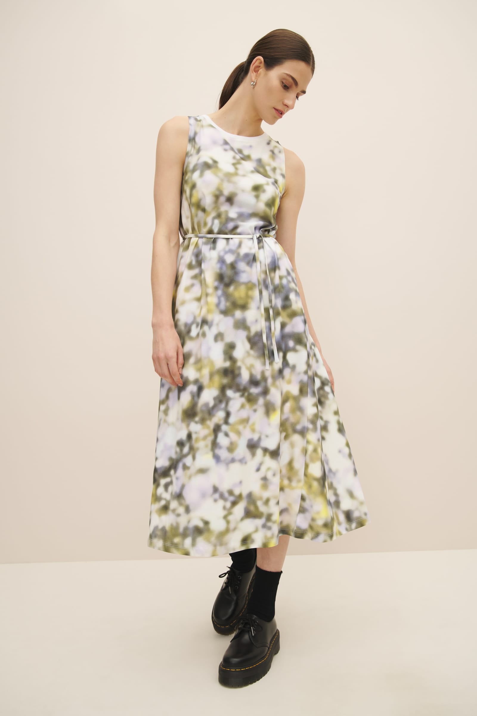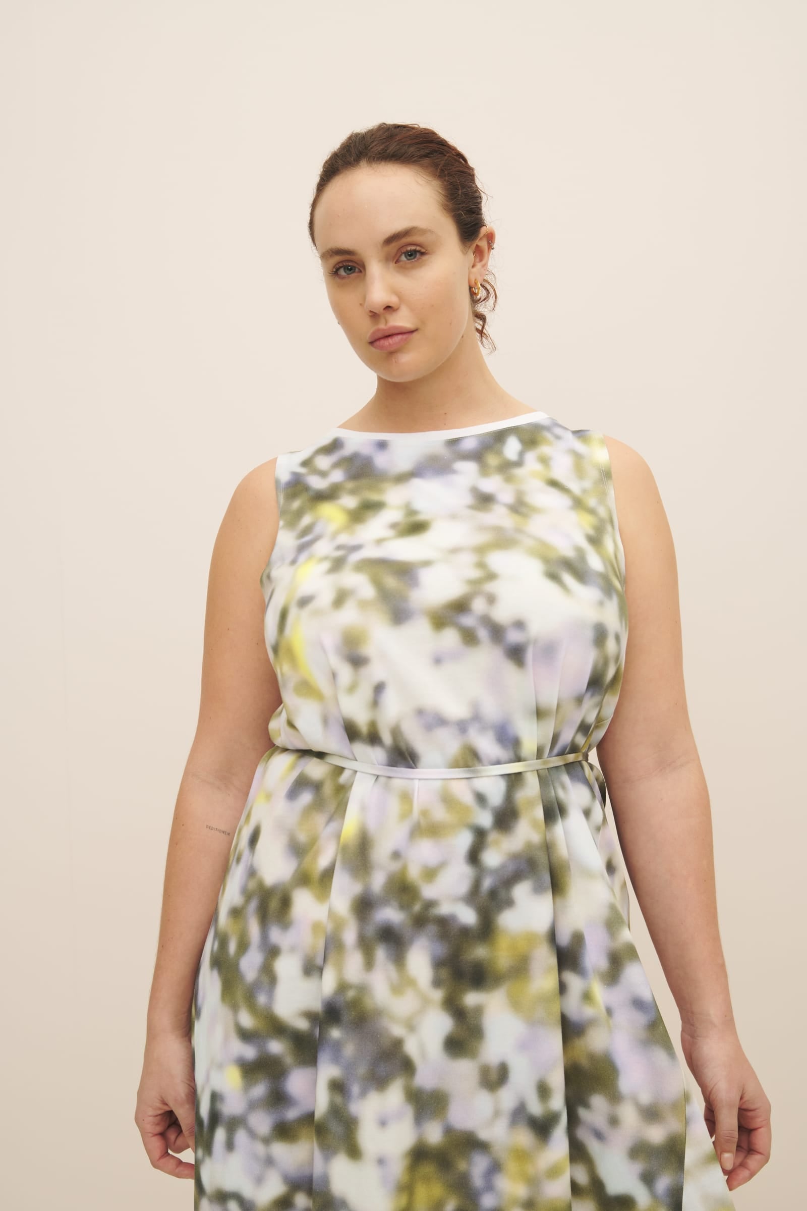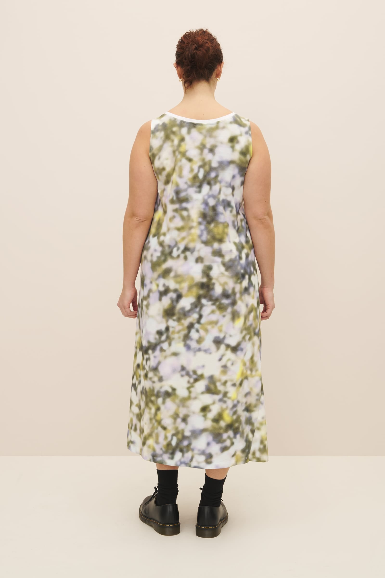 Made from 100% certified Fairtrade midweight organic cotton jersey, the Komorebi Dress is a slip-on style with a simple A-line silhouette and is a printed version of our Tank Swing Dress. It features our Komorebi print which is inspired by dappled light filtered through a forest canopy. The dress can be worn loose or cinched at the waist with the self-fabric tie.