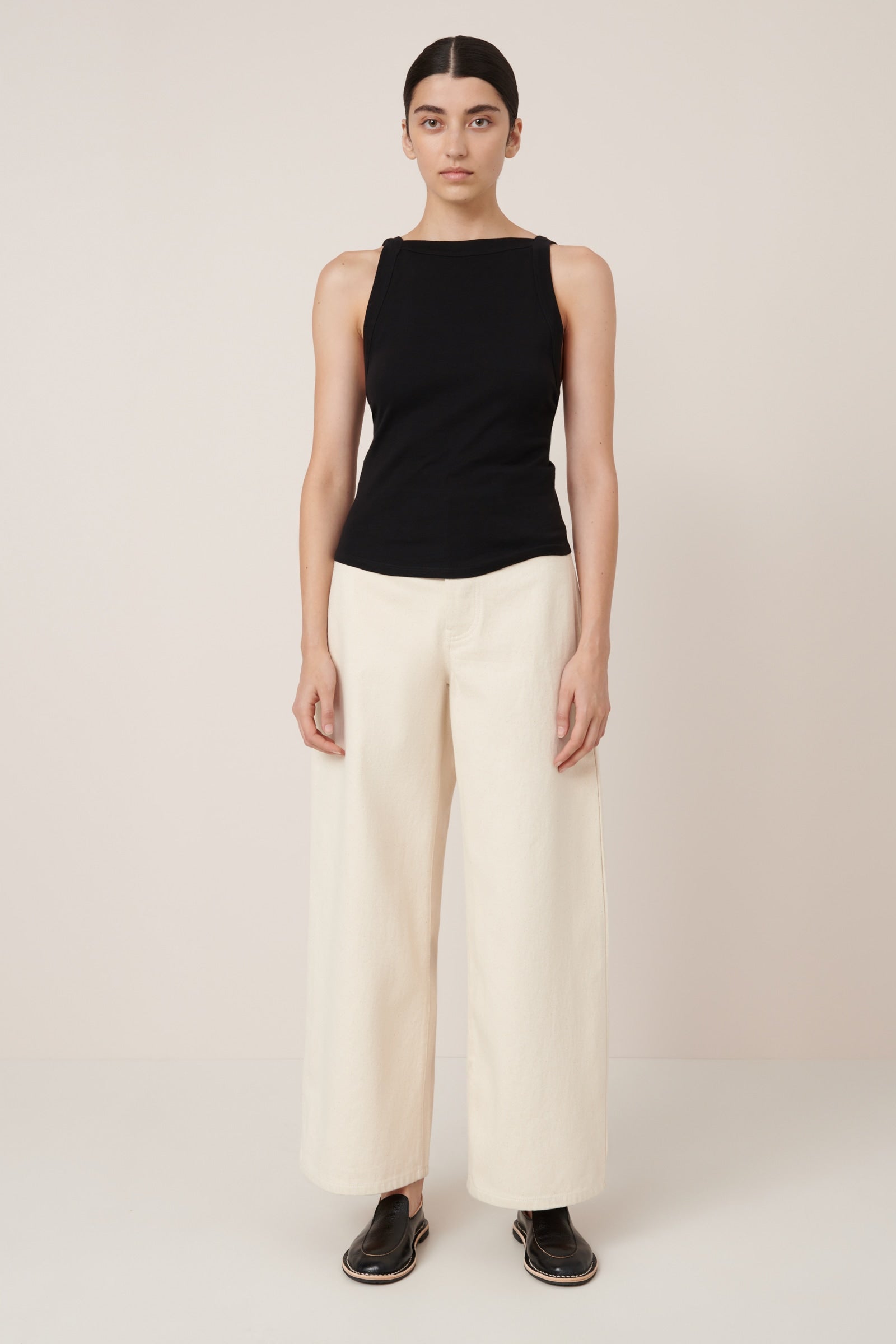 The Low Back Cami is a midweight full rib top with a form hugging, close fit and shortened length. It has a high neckline at the front with a low square back and is made in 100% certified Fairtrade organic cotton jersey rib.