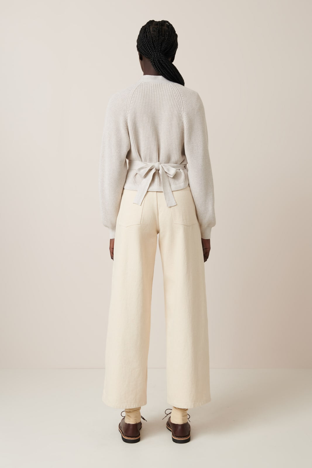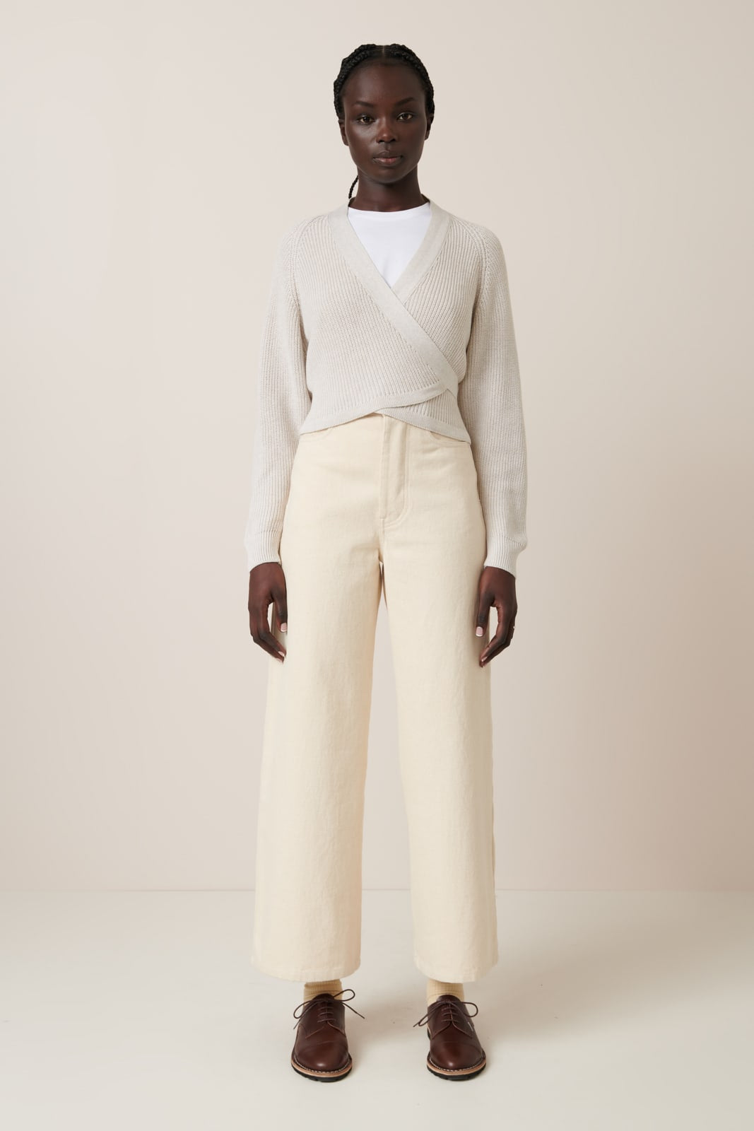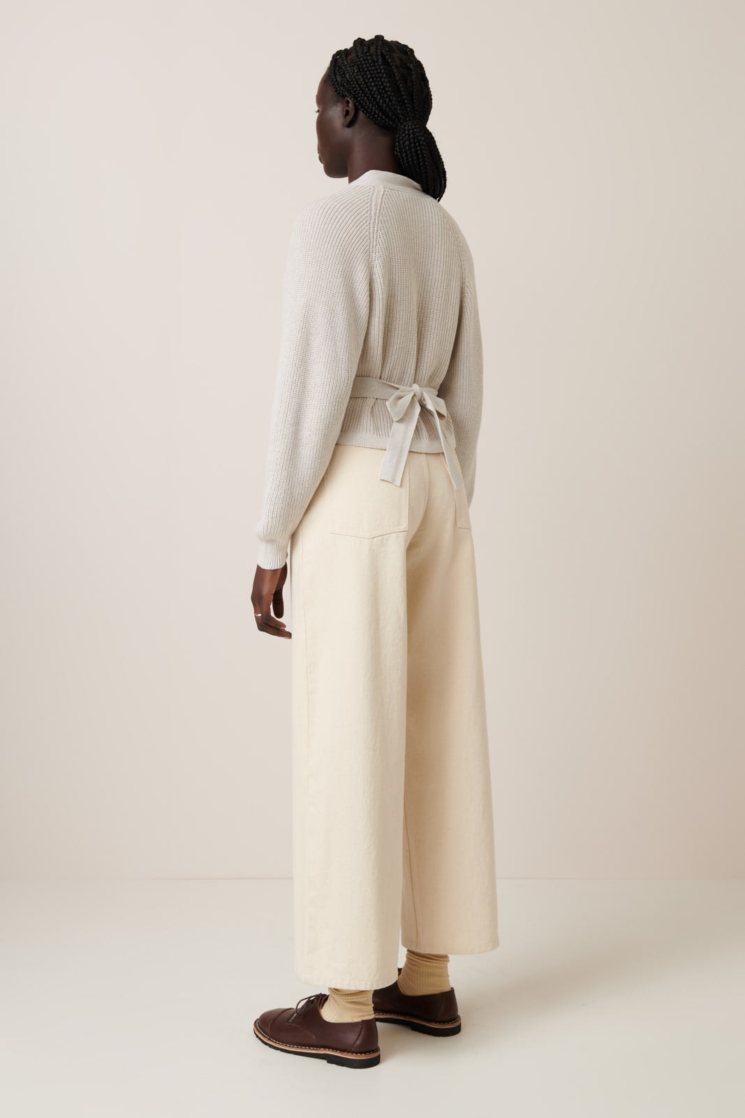 A ballet style wrap cardigan, made from 100% certified Fairtrade organic cotton and knitted in a tuck stitch. The Composure Cardigan has a generous fit through the body, and is slightly cropped in length. A versatile piece that can be worn loose, or cinched in at the waist with narrow tie fastenings. Great for layering over your favourite dress or a pair of jeans.