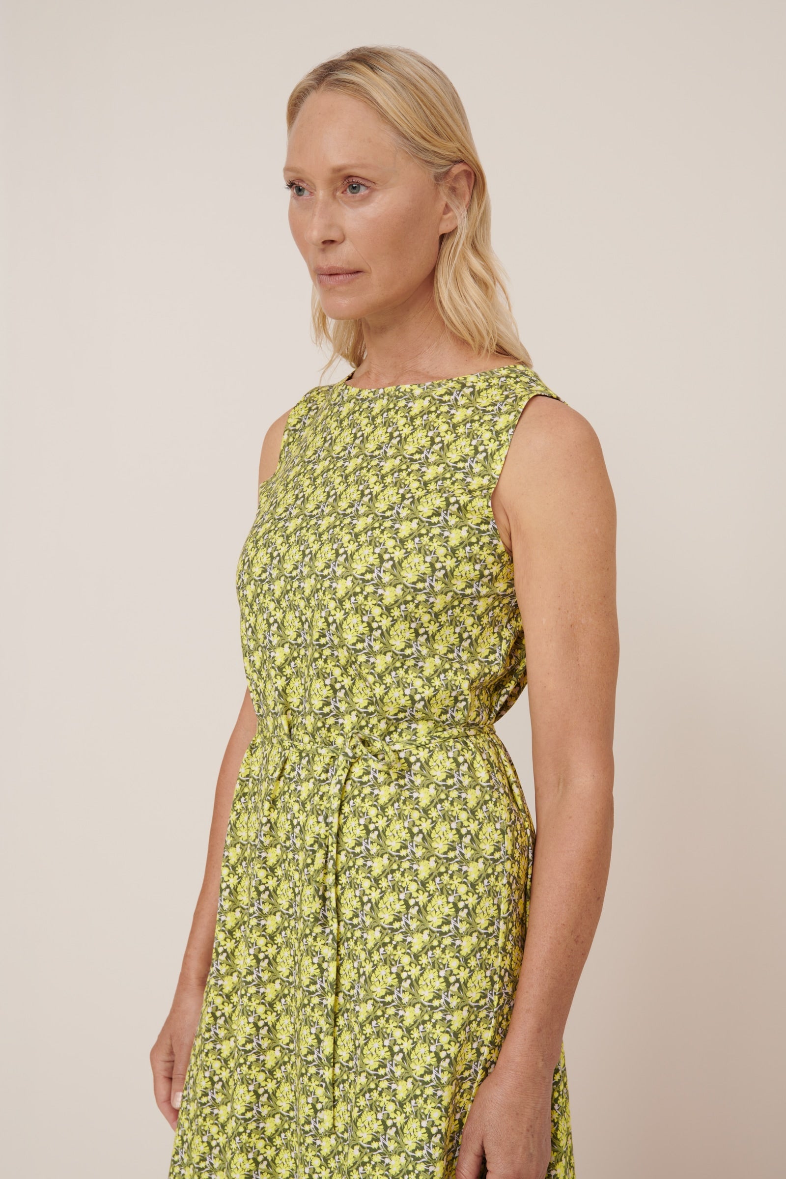 The Flora Dress is a relaxed, easy-wear style designed with an a-line shape for a comfortable, off the body fit. A printed version of our Tank Swing Dress, it falls to ankle length and features our signature twisted side seams. Made from midweight organic cotton jersey and printed in our hand-drawn Flora print. It can be worn loose or cinched in at the waist with the narrow, self-fabric tie.