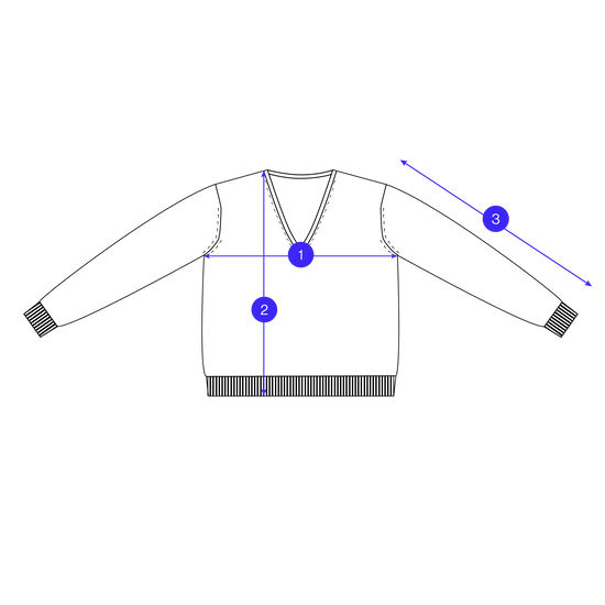 Measured flat across the front of the garment, taken just below the underarm point. This figure has then been doubled to get the full bust measurement.
