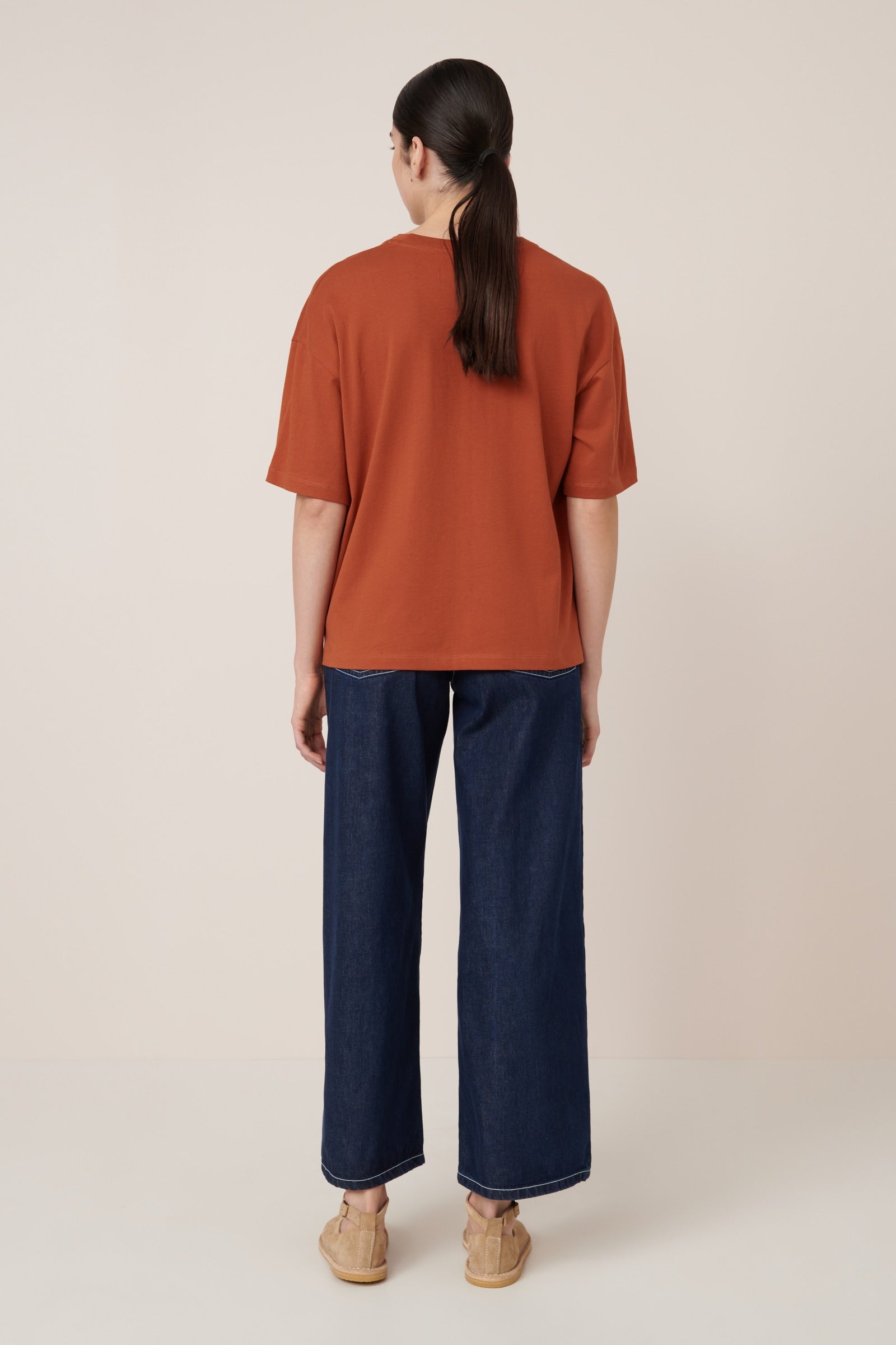 The Everyday Tee is an updated version of our beloved Boxy Tee, maintaining the same oversized fit with added side splits for extra comfort and ease of wear. Slightly cropped in length, this tee offers a modern touch to a classic style, perfect for everyday wear. Crafted from midweight organic cotton jersey in Clay Red, a rich colour inspired by urban landscapes.