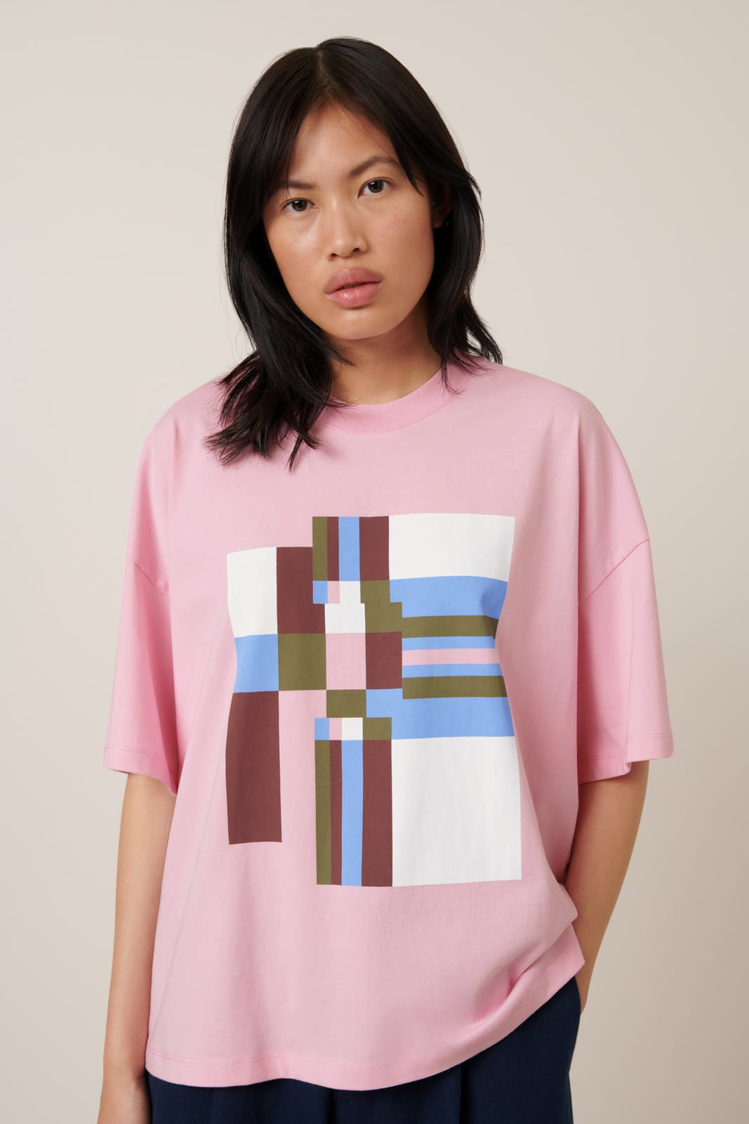 A short sleeve tee with a very oversized fit and finished with a ribbed crew neck. Made from midweight organic jersey and featuring our seasonal plaid design, combining colours from our Terra Check print.