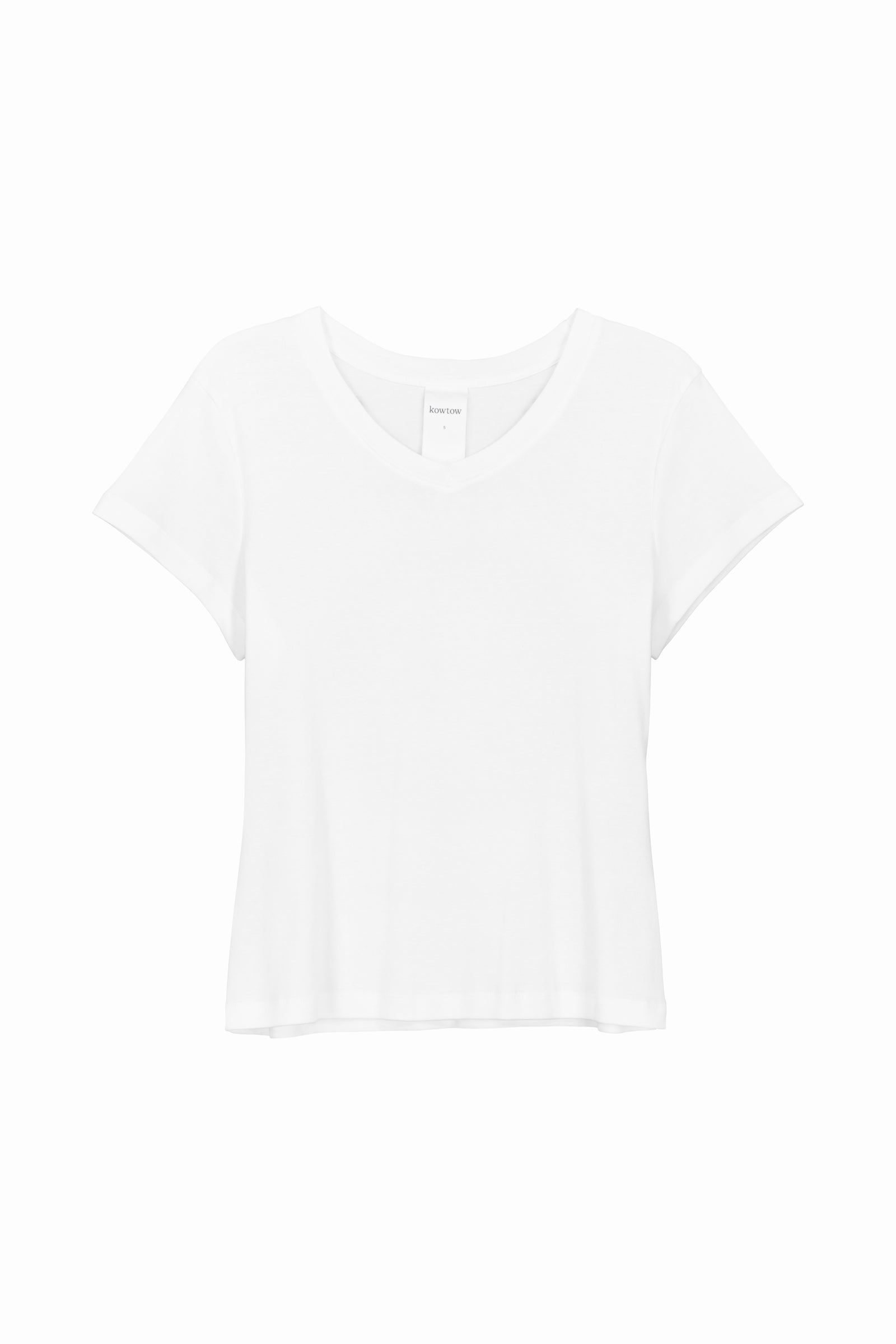 A refined take on an everyday essential, the Ridge Tee is a baby tee style that features a flattering v-neckline, cap sleeves and a slightly cropped body. Designed for a close fit, it is made from midweight, ribbed organic cotton jersey.