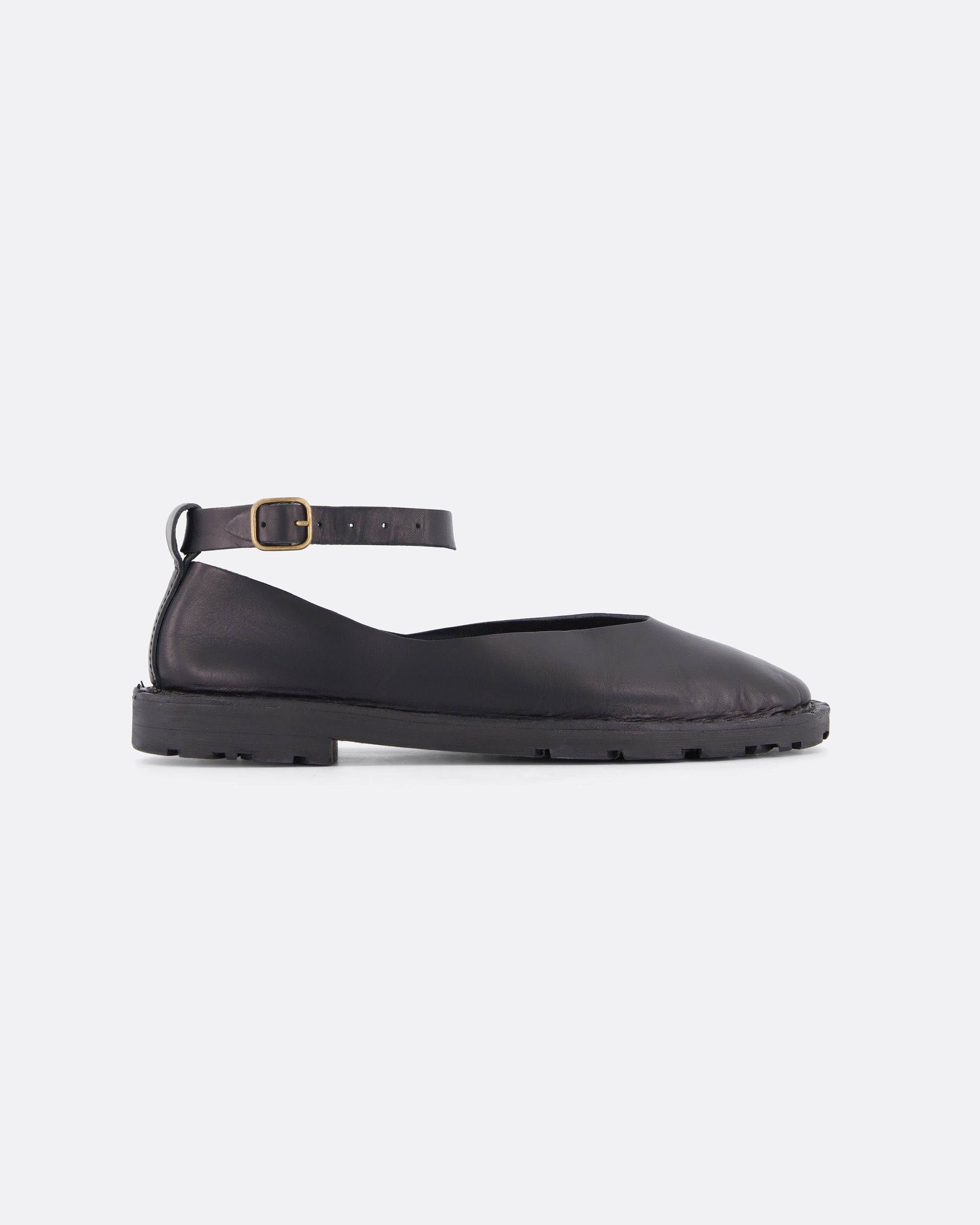 Artisanal Pump with detachable ankle strap, crafted from vegetable tanned leather.