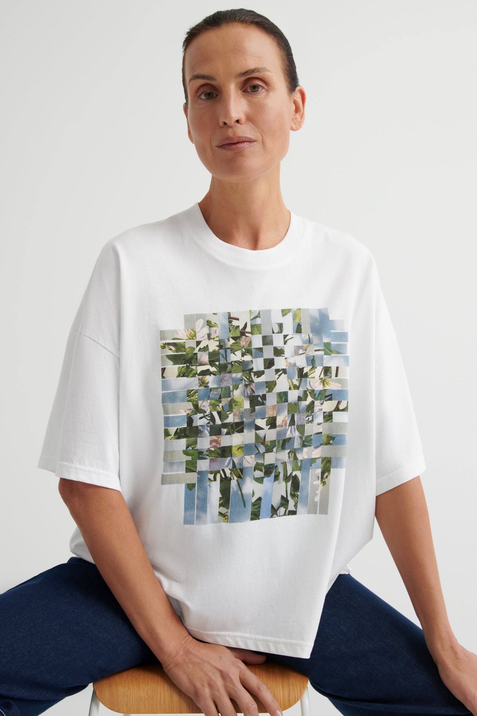 A digitally printed tee designed for an oversized, off the body fit and finished with a classic crew neckline. Made from midweight organic cotton jersey.