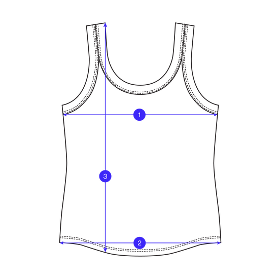 Measured flat across the front of the garment, taken just below the underarm point. This figure has then been doubled to get the full bust measurement.
