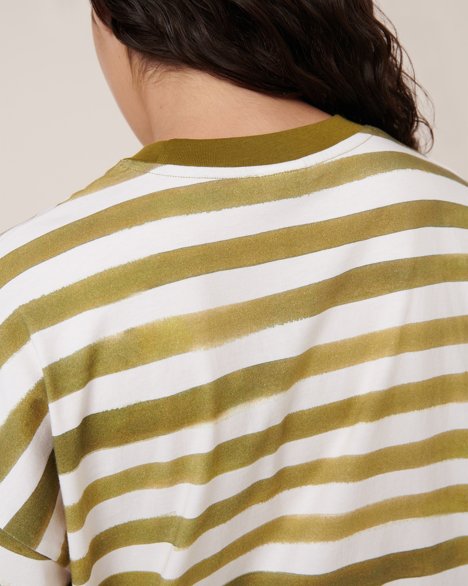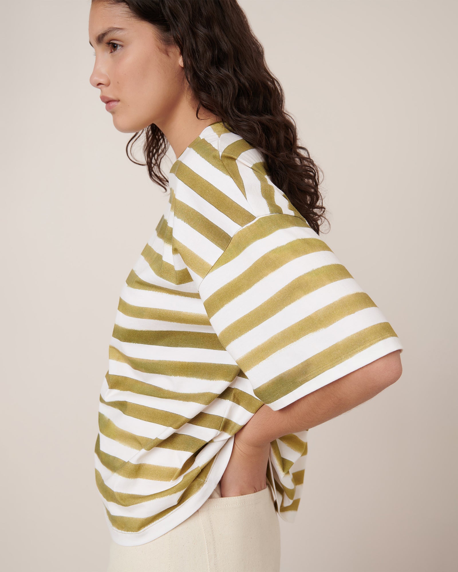 A best seller for a reason, our Oversized Boxy Tee is designed for an easy, off the body fit and is finished with a classic crew neckline. Crafted from midweight organic cotton jersey, this tee features our hand-painted Brushstroke Stripe print — an artful take on a traditional breton stripe.