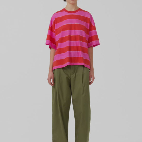 A best seller for a reason, our Oversized Boxy Tee is designed for an easy, off the body fit and is finished with a classic crew neckline. Crafted from midweight organic cotton jersey, this tee features our hand-painted red and pink stripe.