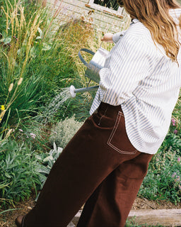Organic, Fairtrade, certified cotton forms the base of our garments along with a considered collection of trims and buttons chosen for their natural and recyclable nature, making Kowtow garments completely plastic-free. Our organic cotton is grown using non-genetically modified seeds, sans harmful chemicals.
