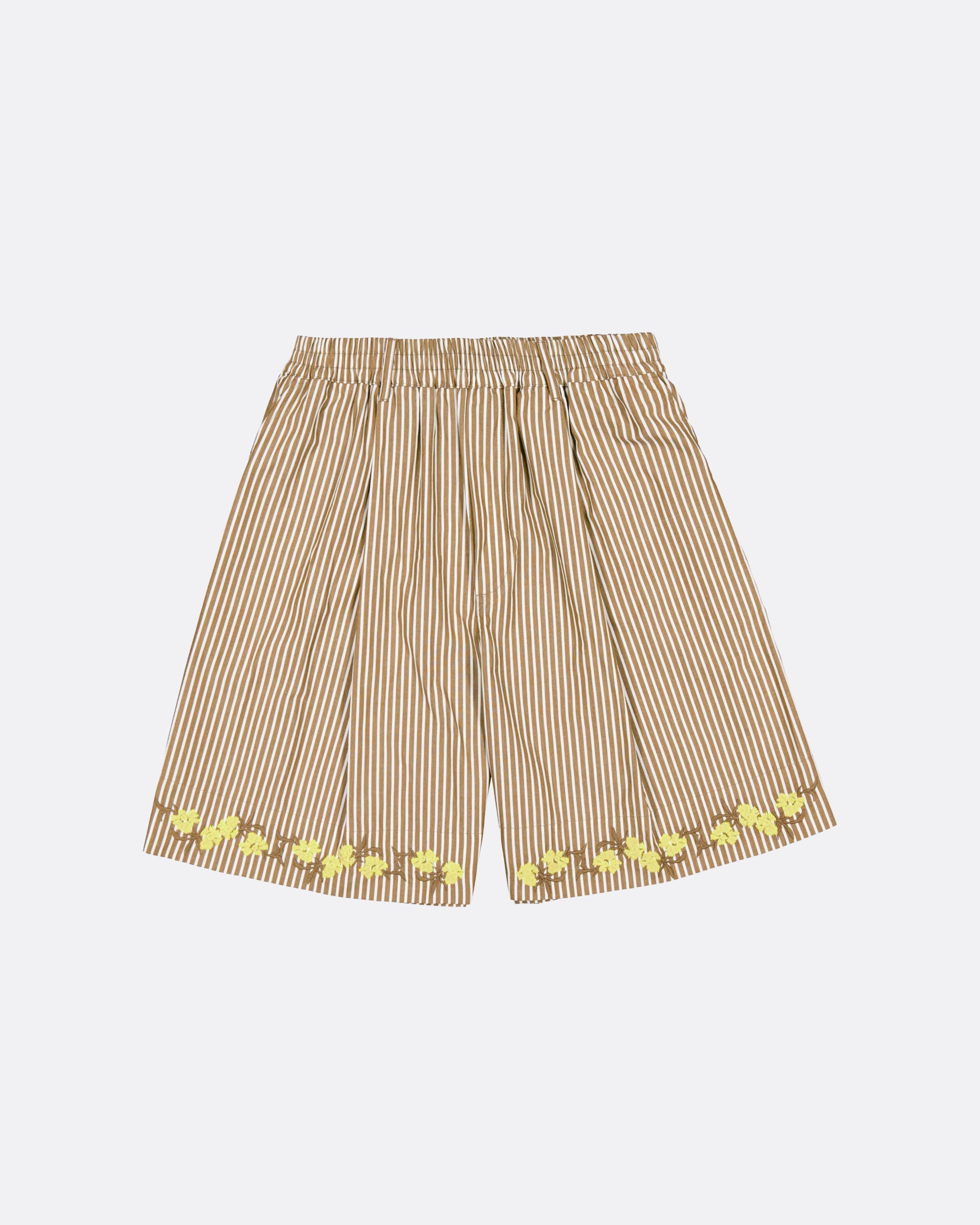 The Wildflower Shorts offer an easy-wear, relaxed fit with pleating at the waist for added volume. Designed to sit high on the waist, they feature a comfortable elastic waistband and practical side seam pockets. Detailed with delicate cotton emrbroidered floral motifs around the hem, these shorts pair perfectly with the Wildflower Shirt.